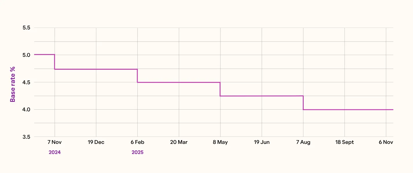 The base rate sets the amount the Bank of England charges other banks and lenders to borrow money. It’s reviewed every 6(ish) weeks at the MPC (monetary policy committee) meeting. It moves up and down – or stays the same – to help control inflation in the UK. Check back here for any movement on the rate and find a full breakdown in our Latest News section.
